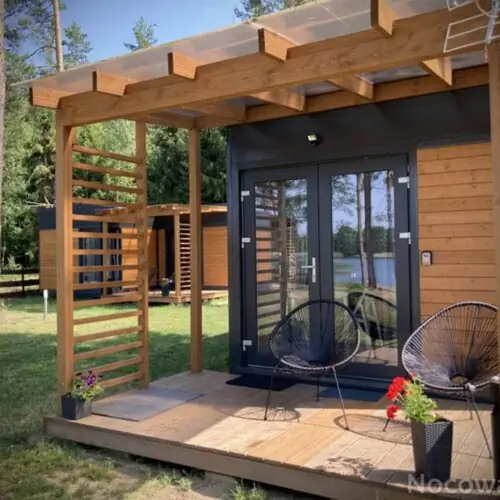 Domek drewniany 4-osobowy z tarasem z widokiem na jezioro