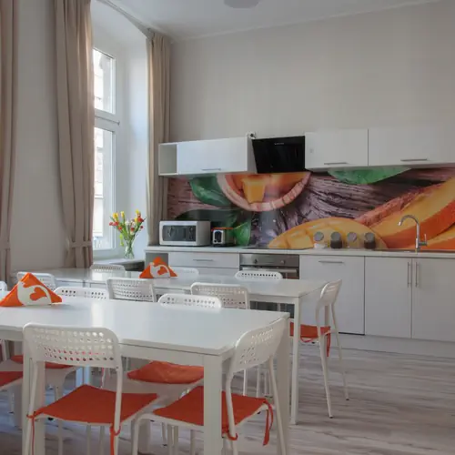 W Hostelu Mango mieści sie wspólny salon z telewizorem i komputerem. Goście mogą też skorzystać z wpełni wyposażonej kuchni. Zapewniamy zakwaterowanie w odnowionych wnętrzach oraz przemiłą atmosferę. Personel Hostelu Mango zawsze służy pomocą i chętnie doradzi gdzie zjeść dobrze i tanio oraz jak dotrzeć pod wskazany adres.