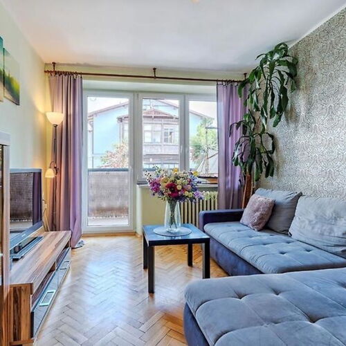 W układ apartamentu wchodzi salon z wyjściem na balkon, samodzielna kuchnia, łazienka, oraz sypialnia. Goście mają do dyspozycji pełne wyposażenie obiektu, włączając w to Wi-Fi.