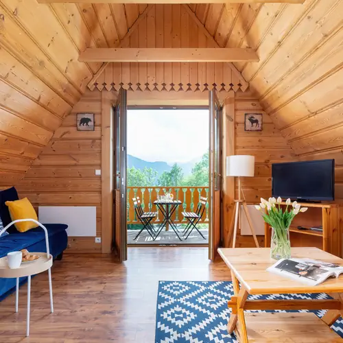 Ten w pełni wyposażony apartament typu studio jest odpowiedni dla 4 osób. Składa się z pokoju z dwoma rozkładanymi podwójnymi sofami oraz kuchni z jadalnią wyposażoną w najpotrzebniejsze sprzęty do przygotowania samodzielnie posiłku takie jak mikrofalówka czy ekspres do kawy. Do dyspozycji gości jest również łazienka z prysznicem. Drewniane wykończenie mieszkania pozwoli poczuć prawdziwy góralski klimat. Z balkonu natomiast możemy podziwiać przepiękny widok na panoramę Tatr. Balkon wyposażony jest w stół oraz krzesła. Dla gości zmotoryzowanych dostępny jest ogólnodostępny, bezpłatny parking na posesji.