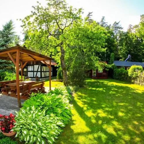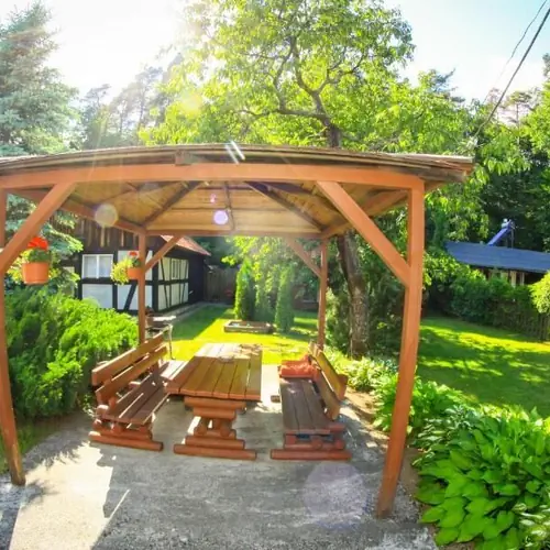 Domki i kwatera posiadają aneks kuchenny ( kuchenka dwupalnikowa, naczynia, sztućce, czajnik, lodówka ) .