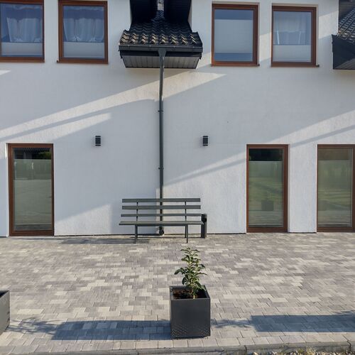 Budynek jest nowo wykończony. Obiekt zaprasza swoich gości do 6 pokoi: 2 i 3 osobowych z prywatnymi łazienkami. Pokoje wyposażone w wentylacje mechaniczna (rekuperacje), TV Smart, WiFi, ręczniki, przybory toaletowe, świeżą pościel. Z każdego pokoju osobne wyjście na taras. Możliwość korzystania z ogrodu, trampoliny, huśtawek oraz dwóch leżaków. Dodatkowo na życzenie gości dysponujemy suszarką do włosów, żelazko +deska do prasowania. Dla wszystkich gości oddajemy w pełni wyposażoną kuchnie w: