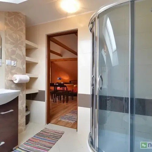 Do dyspozycji gości mamy 2 duże pokoje z łazienkami, w każdym z nich są cztery miejsca noclegowe. Jeden pokój ma łazienkę z kabiną prysznicową, przy drugim jest łazienka z wanną.