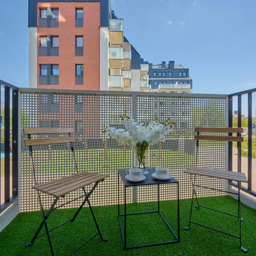 Ten komfortowy apartament może zakwaterować 4 osoby. Składa się z salonu z aneksem kuchennym, sypialni oraz łazienki z wanną. Wnętrze jest jasne, przestronne, funkcjonalnie zaprojektowane i stylowo wykończone, wychodząc naprzeciw wszelkim potrzebom gości. Część dzienna wyposażona w wygodną sofę oraz telewizor z płaskim ekranem stanowi doskonałe miejsce odpoczynku i relaksu. Panoramiczne drzwi balkonowe wypełniają przestrzeń naturalnym światłem, co nadaje wnętrzu lekkości. Apartament posiada dostęp do szybkiego bezpłatnego Internetu Wifi. Sypialnia oferuje bardzo wygodne łóżko małżeńskie oraz miejsce do pracy zdalnej lub nauki. Do dyspozycji gości jest także balkon z meblami ogrodowymi – idealne miejsce na łyk porannej kawy. Dodatkowo, aneks kuchenny wyposażony jest w wysokiej jakości sprzęt AGD (piekarnik, ekspres do kawy, mikrofalówka, zmywarka), który pozwoli Ci na przygotowanie ulubionych posiłków. Szeroki wachlarz udogodnień oraz kompleksowe wyposażenie apartamentu w niezbędne akcesoria i sprzęty kuchenne, jak i łazienkowe gwarantuje komfort pobytu. Dla ułatwienia rozpoczęcia każdego pobytu zapewniono bezpłatny zestaw kosmetyków (mydło, szampon i żel pod prysznic), ręczniki oraz pościel. Do apartamentu przynależy również miejsce parkingowe w garażu podziemnym.