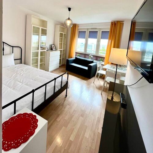 Zapraszam do Studio przy ul Orzyckiej na Warszawskim Mokotowie, ulokowanego na 10 piętrze. Znajdziesz tu wygodne łózko o wymiarach 160x200 oraz rozkładaną sofę, oddzielony ścianą w pełni wyposażony aneks kuchenny i łazienka z prysznicem. 1 kilometr do Centrum Handlowego Westfield Mokotów oraz 4,4 km do Lotniska im Fryderyka Chopina. Doskonały punkt komunikacyjny.