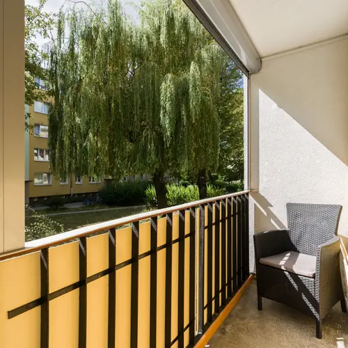 Apartament z balkonem znajduje się w budynku na spokojnym Osiedlu Bohaterów II Wojny Światowej w Poznaniu, na Ratajach. Położenie osiedla 7 minut spacerem do Parku Rataje z zabytkową koleją i ścieżkami rowerowymi pozwala odpocząć po całodziennym zwiedzaniu miasta. Niedaleko leży również Park na os. Armii Krajowej (500 m), który stanowi wyciszenie od ulicznych hałasów. W odległości 2,6 km znajduje się Centrum rekreacyjno-sportowe - Jump Arena Rataje. Obiekt zapewnia bliskość do centrum miasta i komunikacji miejskiej. Przystanek autobusowy „Os. Armii Krajowej” zaledwie 2 minuty od mieszkania. Na Poznański Stary Rynek z mnóstwem wspaniałych restauracji, kawiarni, klubów i muzeum jest 3,6 km. W pobliżu obiektu wiele placów zabaw, punktów handlowo-usługowych: piekarnie, sklepy spożywcze, apteki, centrum handlowe Pasaż Rondo (350 m) i Posnania (2,6 km) z Kinem Helios.