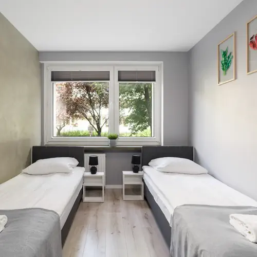 Ten apartament to odpowiedni wybór dla rodziny lub grupy przyjaciół. Mieszkanie o powierzchni 47 m² ma możliwość zakwaterowania aż 6 osób. Składa się z przedpokoju, salonu, kuchni, dwóch sypialni oraz łazienki z prysznicem i toaletą. Część dzienna posiada wyjście na balkon, gdzie można delektować się poranną kawą. Goście mogą skorzystać z szybkiego Wi-Fi i telewizora z płaskim ekranem. Kompleksowe wyposażenie apartamentu w niezbędne akcesoria i sprzęty kuchenne, jak i łazienkowe gwarantuje komfort pobytu. Goście mogą skorzystać z powitalnego zestawu kosmetyków (mydło, szampon i żel pod prysznic), ręczników, pościeli oraz szerokiej gamy artykułów gospodarstwa domowego, takich jak żelazko czy odkurzacz. Samochód można zaparkować na parkingu przy bloku, w miarę możliwości wolnego miejsca.