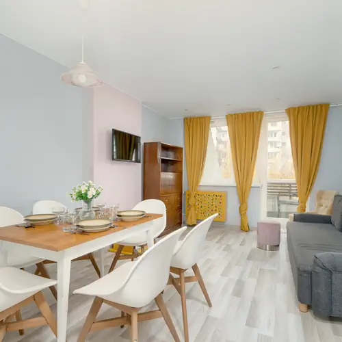 Apartament nie ma przypisanego miejsca parkingowego, ale goście mają możliwość zaparkowania na miejscowym parkingu, o ile są wolne miejsca. Dojazd do centrum Poznania zajmie jedynie 12-15 minut samochodem lub 20 minut komunikacją miejską.