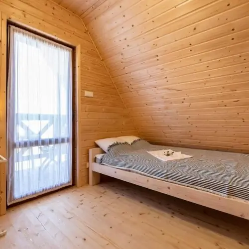 Domki wypoczynkowe wykonane są z wysokiej jakości materiałów przyjaznych dla Naszych Gości i są gustownie urządzone z dbałością o szczegóły. W każdym domku jest nadany inny charakter wnętrza. Zapach świeżej sosny będzie Państwa budził rano. W trosce o komfort wypoczynku naszych gości - domki nasze są ocieplone styropianem, wyciszone wełną mineralną, termicznie spełniają warunki domków całorocznych. W upalne lato jest w nich chłodno, a w pochmurne dni ciepło. Nasze Domki oddalone są od głównej drogi i nie przylegają do siebie ( każdy stoi osobno), co daje komfort wypoczynku.