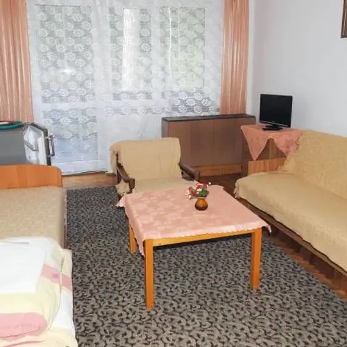 Zakwaterowanie w domkach campingowych 2, 4 i 5-osobowych z werandą, bieżącą wodą i WC lub w pawilonie ze wszelkimi wygodami. Duża stołówka pozwala jednorazowo na wydanie 200 posiłków z kuchni o bardzo dobrej renomie.