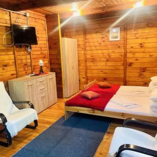 - domki 3 , 5 i 6-osobowe z pełnym węzłem sanitarnym, aneksem kuchennym lub kuchnią