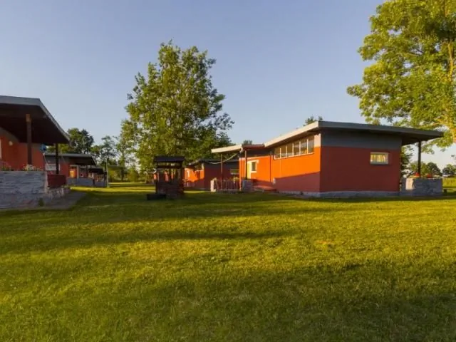 • Pozostałe 6 domków (12 pokoi) nie posiada WC. Zaopatrzony jest w umywalkę. Z toalety i prysznica należy korzystać w sanitariatach ogólnych.