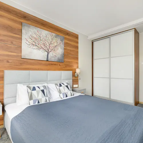 Jasny apartament o powierzchni 51.69 m² jest idealny na pobyt dla maksymalnie czterech osób. Salon, będący sercem mieszkania, jest wyposażony w wygodną rozkładaną sofę, która nie tylko służy jako miejsce do relaksu i oglądania telewizji, ale także może pełnić funkcję dodatkowego miejsca do spania. Telewizor z funkcją smart zapewnia dostęp do szerokiej gamy rozrywki, umożliwiając oglądanie ulubionych filmów i programów. W salonie znajduje się również stół z czterema miejscami siedzącymi, co sprawia, że spożywanie wspólnych posiłków jest wygodne i przyjemne. Aneks kuchenny jest w pełni wyposażony w kuchenkę elektryczną, lodówkę z zamrażarką, piekarnik, kuchenkę mikrofalową oraz czajnik elektryczny, co umożliwia przygotowywanie dań w domowych warunkach. W sypialni znajduje się przestronne łóżko małżeńskie oraz pojemna szafa. W jasnej łazience jest prysznic, toaleta oraz pralka co, czyni ten apartament idealnym miejscem na dłuższe pobyty. Ten apartament jest idealnym wyborem dla rodzin, par lub grupy znajomych, szukających komfortu i wygody. Na dobry początek pobytu zapewniamy gościom bezpłatny zestaw kosmetyków, ręczniki oraz pościel.