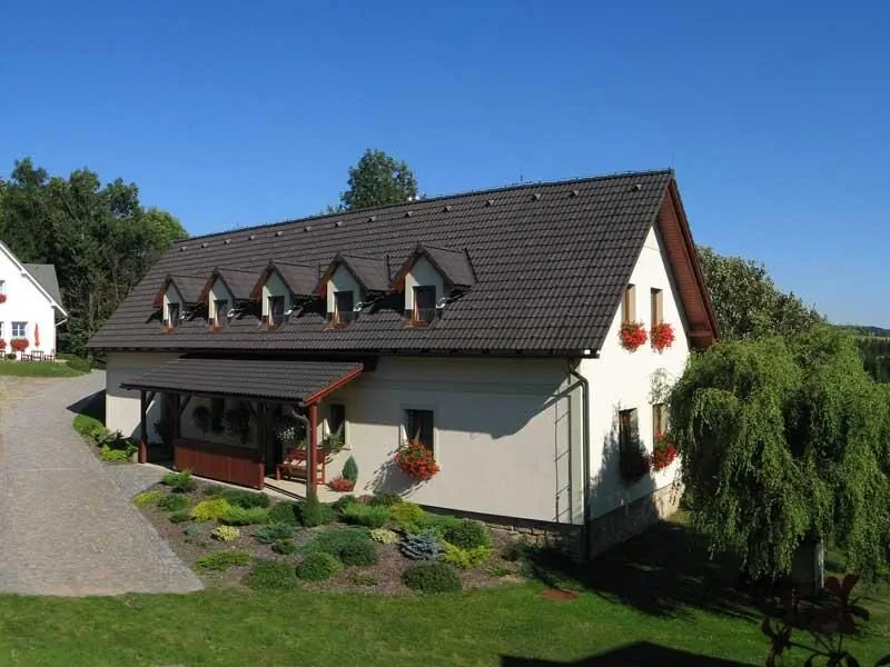 W środku regionu turystycznego Broumovsko-Adršpach, z dala od innych, na wzgórzu nad wsią, w półodosobnieniu. Pensjonat Selský dvůr nr. 2.