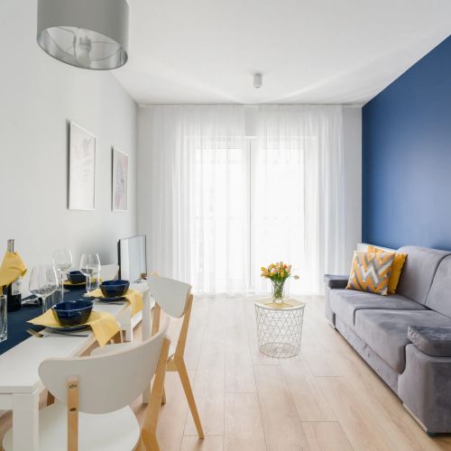 Uroczy i cichy apartament o atrakcyjnej powierzchni mieszkalnej 54 m² będzie idealnym rozwiązaniem na rodzinny wyjazd! Obiekt wyposażony w klimatyzację, nowy sprzęt i umeblowanie, zapewnia komfort pobytu. Posiada przestronny salon z aneksem kuchennym ze zmywarką, płytą indukcyjną oraz wszelkimi niezbędnymi sprzętami kuchennymi i naczyniami do gotowania. W części sypialnianej można znaleźć wygodne łoże małżeńskie i garderobę z lustrem. Apartament zawiera łazienkę z kabiną prysznicową i pomieszczenie gospodarcze. Mieszkanie charakteryzuje się nowoczesnym wystrojem, estetyką oraz funkcjonalnością. Goście mogą skorzystać z szybkiego Wi-Fi i telewizora z płaskim ekranem.