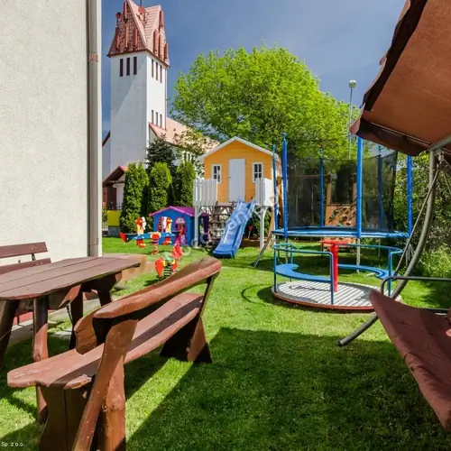 Gościom oferujemy wygodne pokoje z łazienkami. Kwatery wyposażone są w TV , balkon, czajnik bezprzewodowy, lodówkę, kuchenkę mikrofalową, sztućce talerze, koc i parawan na plażę. Posesja jest ogrodzona na której znajdują się bezpłatne miejsca parkingowe na którym samochody się wzajemnie nie zastawiają. Do dyspozycji gości dostępne są: ogród wypoczynkowy, duże zielone podwórze, internet WiFi, grill przenośny, aneks kuchenny, żelazko i deska do prasowania, Dla dzieci przeznaczony jest urozmaicony plac zabaw: huśtawki, karuzela, zjeżdżalnia, domki ogrodowe wyposażone w kuchnie dla najmłodszych stoliki krzesła oraz zabawki, bujaki, równoważnia, piaskownica, ściana do wspinaczki, drabinki oraz trampolina. Obiekt znajduje się około 200 metrów od wejścia na plażę i 50 metrów od przestanku PKS.