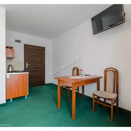 Obiekt dysponuje pokojami dwu-, trzy- i czteroosobowymi w każdym pokoju jest aneks kuchenny
