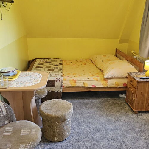 Na wyposażeniu pokoi -łoża małżeńskie oraz tapczany pojedyncze, szafa, stół, foteliki.