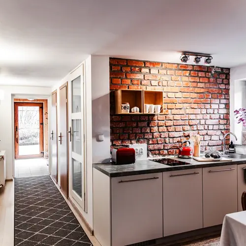 Do dyspozycji gości jest w pełni wyposażony aneks kuchenny, wspólny dla trzech pokoi (lodówka, płyta elektryczna, czajnik elektryczny, toster, naczynia, garnki i sztućce), umożliwiający samodzielne przygotowywanie posiłków. W kuchni stół jadalniany. Dostępna jest również kawa (tradycyjna kawiarka) i herbata.