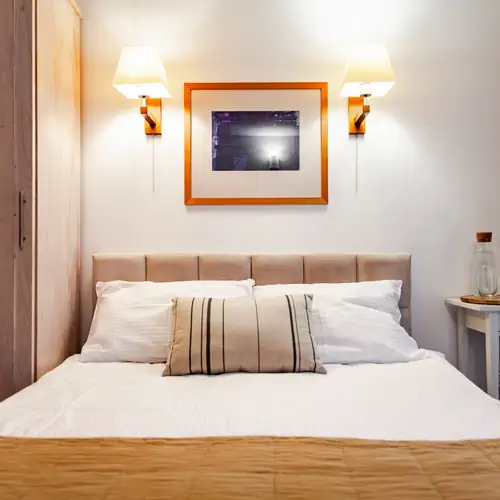 Oferujemy przytulne pokoje dwuosobowe z łazienkami oraz studio czteroosobowe z dwiema sypialniami i łazienką. Wszystkie pokoje znajdują się na parterze i mają bezpośrednie wyjście do ogrodu. Pokoje są niewielkie i urządzone prosto, ale wyposażone we wszystkie niezbędne udogodnienia, takie jak bezpłatny internet oraz telewizor z płaskim ekranem.