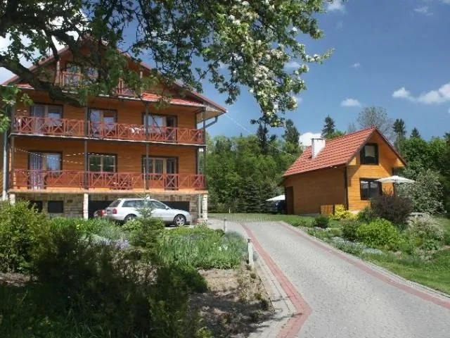 (1023m n.p.m.). Około 50 m od budynku przepływa Potok Gorzki, który oddziela posiadłość od 11 ha lasu. Wokół domu ok. 1ha łąki. Nasz budynek położony jest w odległości ok. 200 m od sanatoriów: Olszówka, Słoneczny Gród, Wierchy.