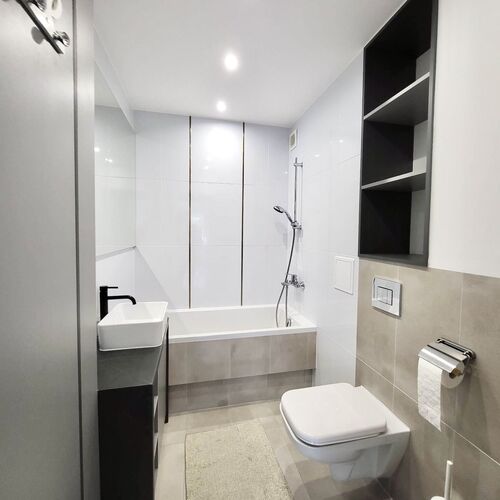 W apartamencie zapewniono 1 sypialnię, kuchnię z lodówką i zmywarką, telewizor z płaskim ekranem, część wypoczynkową oraz 1 łazienkę z wanną. W apartamencie zapewniono ręczniki i pościel.