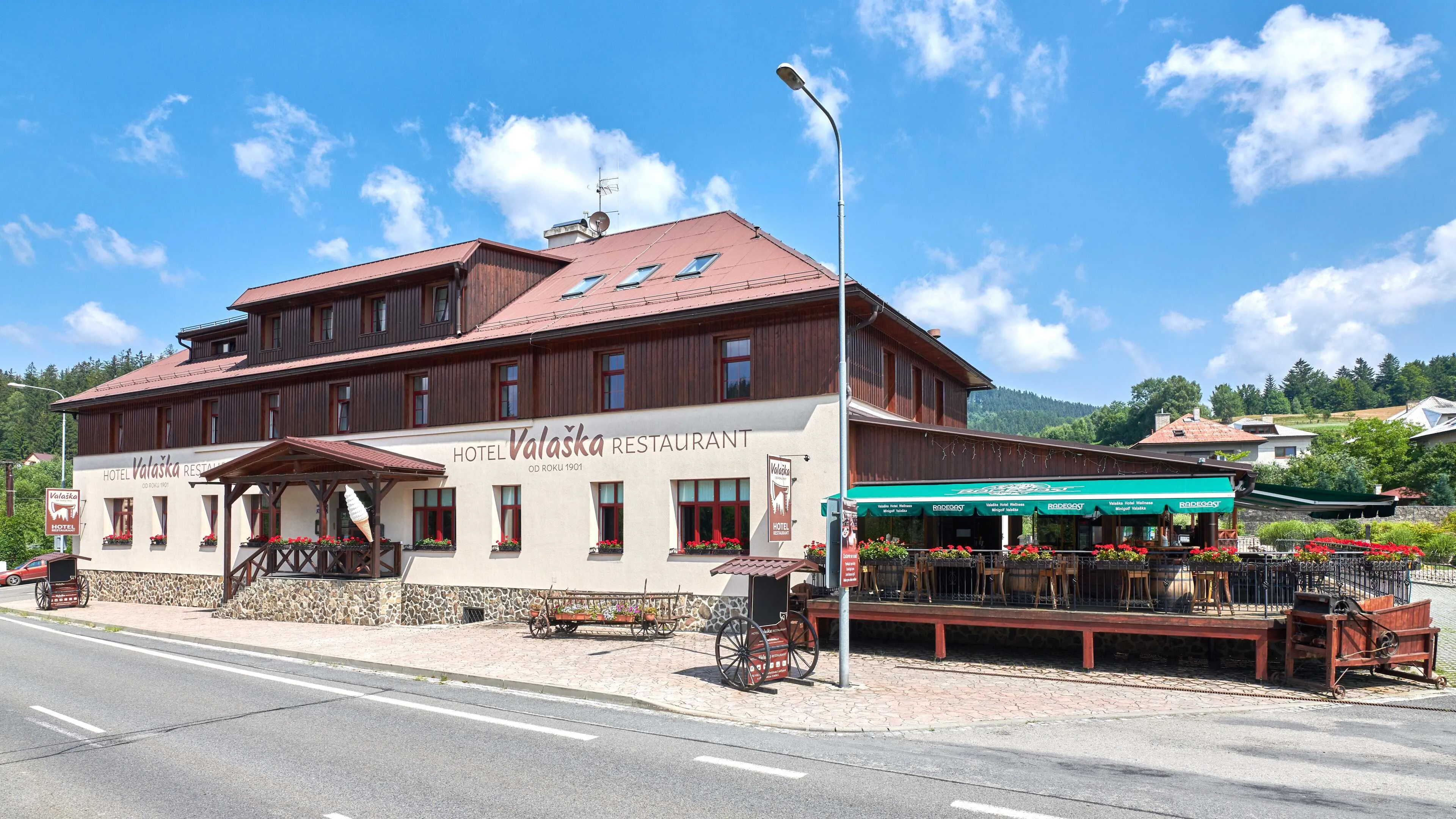Pokoje, usługi Goście Relax hotel Valaška Horní Bečva mogą zatrzymać się w 19 w komfortowych pokojach w Horní Bečva. Relax hotel Valaška Horní Bečva przyjmuje małe zwierzęta na pobyt za dodatkową opłatą. Możesz zatem zabrać swojego czteronożnego przyjaciela ze sobą. Hotel posiada własną restaurację, w której możesz również spróbować doskonałych lokalnych posiłków. Jeśli potrzebujesz zaparkować samochód, skorzystaj z parkingu hotelu za darmo. Nie musisz się martwić ciepłem, klimatyzacja, która jest dostępna w niektórych pokojach, zapewni Ci miły nastrój nawet podczas najgorętszych letnich dni (prosimy sprawdź arkusz informacyjny pokoju aby upewnić się czy klimatyzacja jest częścią wyposażenia). Dokładna lista usług dostępnych w Relax hotel Valaška Horní Bečva (zawierają również te wymagające dopłaty) i dokładne wyposażenie pokoi w informatorze poniżej, oraz w informatorze konkretnego pokoju.
