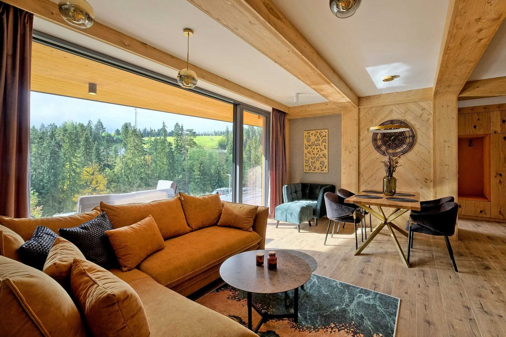 Apartament C5 znajduje się na parterze w nowo wybudowanym kompleksie - Rezydencja Boutique. Obiekt usytuowany jest w samym sercu Białki Tatrzańskiej, zaledwie 500m od wyciągu Kotelnica Białka Tatrzańska. Widok rozpościerający się z apartamentu wychodzi na Białkę Tatrzańską, stoki narciarskie Kotelnicy Białczańskiej oraz na Tatry. Ten ekskluzywny apartament z wyraźnymi elementami stylu podhalańskiego składa się z salonu połączonego z kuchnią, sypialni, łazienki. Do apartamentu przynależy przestronny taras. Rezydencja Boutique jest perfekcyjną bazą wypadową dla miłośników jazdy na rowerze, zwłaszcza dla tych, którzy chcą odkrywać urokliwe trasy wzdłuż Dunajca i w okolicach jeziora Czorsztyńskiego, znane jako Velo Dunajec i Velo Czorsztyn.