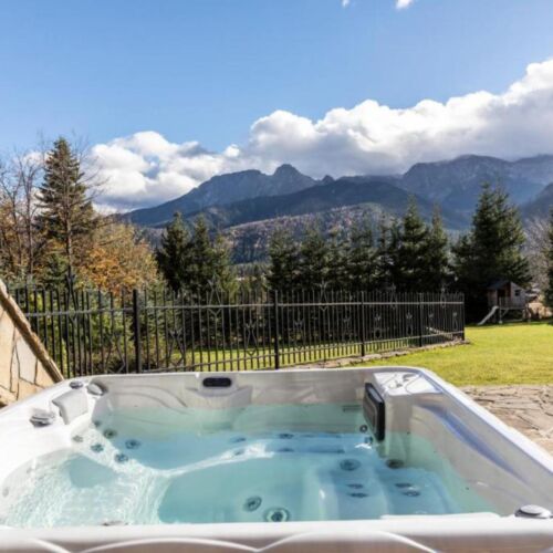 Z kolei przyziemie budynku to miejsce, gdzie można zrelaksować się w wannie z hydromasażem oraz w saunie, podziwiając widok na Giewont. Z tego poziomu wyjść można na taras z meblami ogrodowymi i grillem, oraz do dużego ogrodu z drewnianym domkiem dla dzieci.