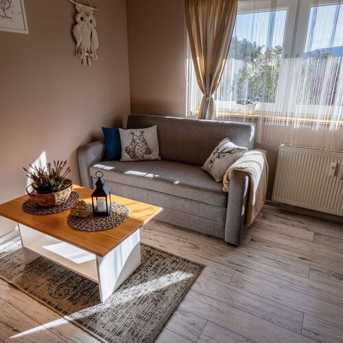 - Studio rodzinne dwupiętrowe (dół-salon z łazienką, piętro-sypialnia).