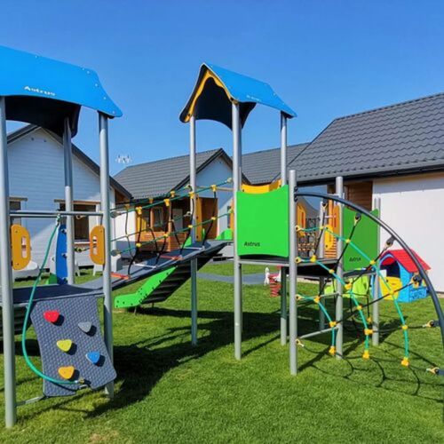 Noclegi w domkach Sarbinowska Jaskółka na pewno będą odpowiednie na wypoczynek z dziećmi. Mamy tu komfortowe warunki, zarówno w obiektach noclegowych, jak też na terenie ośrodka. Z myślą o młodszych gościach przygotowano plac zabaw i świetlicę, na której znajdują się zabawki, cymbergaj oraz piłkarzyki a także wypożyczalnię elektrycznych hulajnóg oraz rowerów.