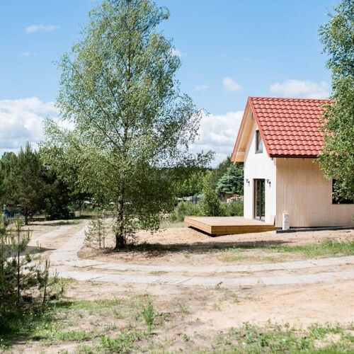 Nowe przestronne, drewniane domki na ogrodzonym terenie położone 150 m od jeziora i strzeżonej plaży.