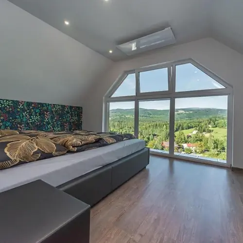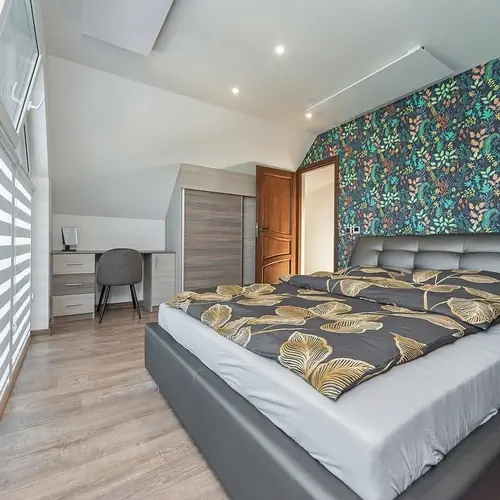 Wykończone są w nowoczesnej stylizacji o powierzchni użytkowej 60 m2. Na pietrze znajdują się dwa pokoje, jeden z łóżkiem małżeńskim, drugi z dwoma pojedynczymi łóżkami.