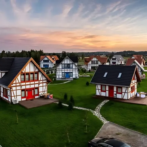 Domy i apartamenty o powierzchni 48–54 m² zostały wykonane w tradycyjnej technice szachulcowej, inspirowane kulturą Wsi Słowińskiej.