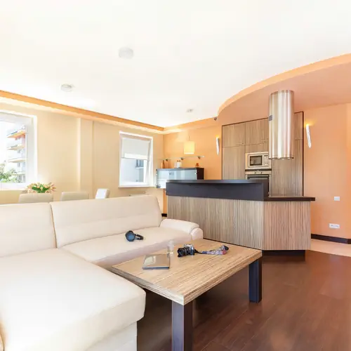 Przestrzeń apartamentu oferuje salon z aneksem kuchennym, 3 sypialnie, łazienkę z wanną oraz łazienkę z prysznicem. Apartament wyróżnia się wielkością, estetyką oraz funkcjonalnością. Część mieszkalna wyposażona w wygodną sofę, TV i wyjście na taras stanowi doskonałe miejsce odpoczynku i relaksu. W sypialniach znajdują się wygodne łóżka oraz wyjścia na balkon. Przestrzenny taras będzie świetny na odpoczynek w ciepłe, letnie wieczory. Dodatkowo, wyposażony w wysokiej jakości sprzęt, aneks kuchenny umożliwia przyrządzenie ulubionych posiłków. Ekskluzywny design oraz kompleksowe wyposażenie w niezbędne akcesoria kuchenne oraz łazienkowe gwarantują komfort pobytu. Rodzice podróżujący z dzieckiem mają także możliwość rezerwacji łóżeczka oraz krzesełka dla swojej pociechy.