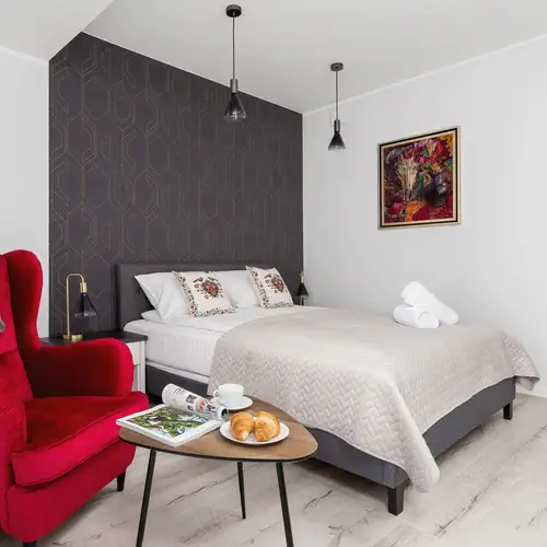 Ten apartament należy do ekskluzywnej kolekcji Renters Prestige. Dla najbardziej wymagających gości czekać będą liczne udogodnienia znane z pięciogwiazdkowych hoteli: zestaw kosmetyków premium, całodobowa infolinia ze statusem VIP, usługi concierge oraz inne.