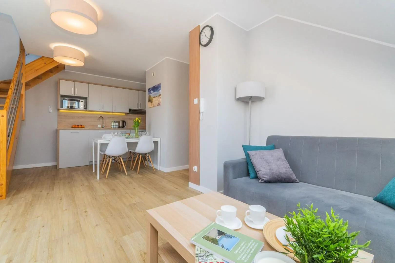 Rozkład pomieszczeń umożliwia wypoczynek maksymalnie dla 6 osób. Na pierwszej kondygnacji znajduje się salon oferujący rozkładaną sofę dwuosobową, w pełni wyposażony aneks kuchenny (lodówka, mikrofalówka, płyta grzewcza, akcesoria kuchenne) oraz sypialnię z łożem małżeńskim. Na drugiej kondygnacji znajdują się dwa łóżka 90x200 cm z możliwością ich połączenia. Łazienka wyposażona w kabinę prysznicową, toaletę, umywalkę, suszarkę do włosów oraz pralkę. Apartament wyposażony w TV 40 cali z funkcją Smart WIFI oraz szybkie łącze internetowe. Do apartamentu przynależy wygodny balkon wyposażony w komplet wypoczynkowy. W ofercie dwa apartamenty.