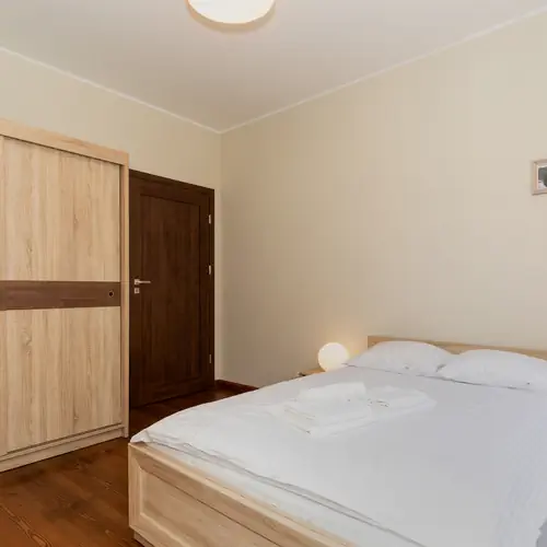 Komfortowy apartament z jedną sypialnią przeznaczony jest dla 5 osób. Składa się z salonu z aneksem kuchennym, sypialni oraz łazienki z prysznicem. W sypialni znajduje się podwójne łóżko oraz rozkładany fotel. Salon wyposażony jest w podwójną rozkładaną sofę oraz TV.