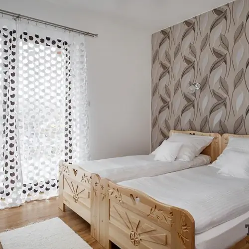 Nowość w Tatrytop. Nowy i wygodny apartament położony jest w nowym kompleksie apartamentów tuż obok Stacji Narciarskiej Jurgów. Kompleks posiada 7 nowych apartamentów i wolno stający domek z kominkiem dla 7 osób. Apartament Jurgów 2 składa się z salonu z wyposażonego w sofę, telewizor LCD aneks kuchenny z częścią jadalną oraz łazienką. W apartamencie znajdują się dwie sypialnie, w jednej jest łóżko podwójne, w drugiej dwa pojedyncze. Z salonu można wyjść na balkon z którego rozprzestrzeniają sią piękne widoki. Do dyspozycji gości, jest również internet bezprzewodowy, parking oraz pomieszczenie gospodarcze z żelazkiem i sprzętami do prasowania. Apartament jest przytulny i urządzony ze smakiem w nastrojowej kolorystyce. Mogą w nim wypoczywać 4 osoby.