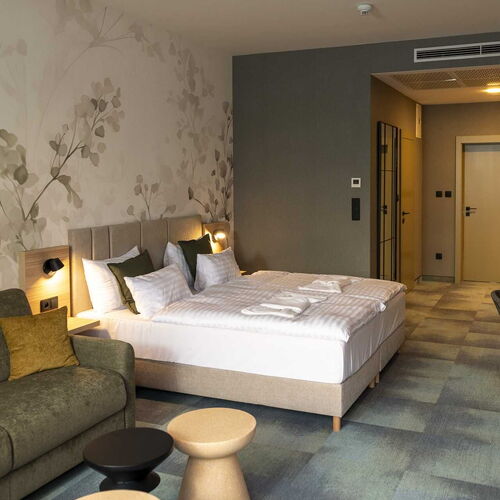 Pokoje, usługi Thermal Hotel Campino**** zaprasza wszystkich gości do Dunajská Streda, na pobyt w 28 komfortowych pokojach. Jeśli chcesz coś zjeść lub się napić, u nas znajdziesz specjalnie przygotowane dla Ciebie dania w restauracji. Przy pensjonat dostępny jest parking, gdzie możesz zostawić samochód za dodatkową opłatą. Klimatyzatory działają w niektórych pokojach, abyś mógł się cieszyć pobytem u nas, nawet podczas gorących letnich dni (prosimy sprawdź arkusz informacyjny pokoju aby upewnić się czy klimatyzacja jest częścią wyposażenia). Jeżeli masz odpowiednie urządzenie przenośne, możesz podłączyć sie do Internetu poprzez bezprzewodową sieć (WiFi) dostępną w pensjonacie. Dokładny zakres usług oferowanych przez Thermal Hotel Campino**** (również tych za dodatkową opłatę) i dokładne wyposażenie pokoju są dostępne w informatorze poniżej i w informatorze konkretnego pokoju.