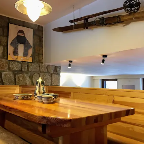Karpacz górska chata z widokiem na Śnieżkę + sauna Przepiękny dom który pomieści do 12 osób, położony przy granicy Karkonowskiego Parku Narodowego. Idealne miejsce na letnią bazę do pieszych wędrówek lub zimowe miejsce relaksu po dniu spędzonym na stoku. W domu panuje przytulna atmosfera dzięki kominkowi w salonie oraz zastosowania do wystroju wnetrza drewna i kamienia. Drewniane podłogi i duże okna z widokiem na las i góry pozwalają poczuć prawdziwy kontakt z naturą. Najbliższy stok znajduje się zaledwie 500 m od domu, obok przystanek skibusa. Dom ma powierznchnię 160 m2. Są w nim cztery sypialnie (każda z podwójnym łóżkiem) oraz poddasze z dwoma podwójnymi rozkładanymi sofami. Do dyspozycji gości jest duża łazienka z wc, dwie samodzielne toalety oraz sauna. Wygodna w pełni wyposażona kuchnia połączona jest ze stefą jadalną dla 12 osób. Na parterze znajduje się duży salon z kominkiem, wygodnymi kanapmi oraz panoramicznym oknem z widokiem na Śnieżkę. Garaż został zamieniony w narciarnię. Dom posiada także ogród o powierzchni 250 m2 z bezpośrednim wejściem do Karkonowskiego Parku Narodowego. Do dyspozycji gości jest także taras z dużą ławą, grillem oraz palenisko.