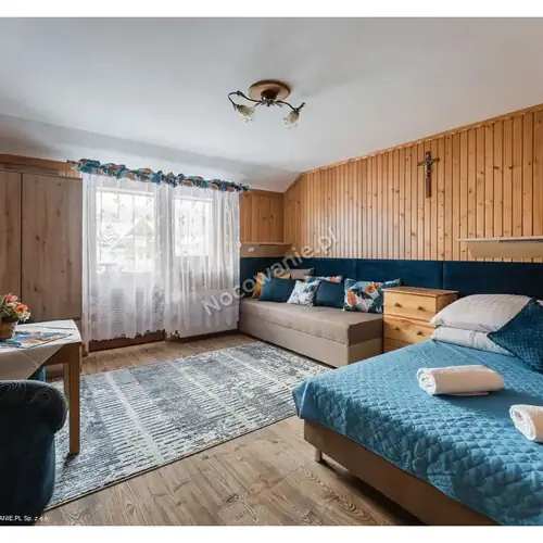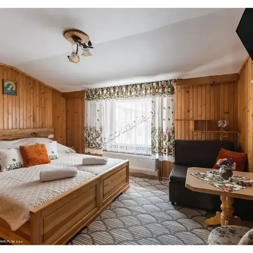 Łącznie oferujemy 10-14 miejsc. Pokoje są wykonane w drewnie, z góralskimi akcentami, w każdym pokoju znajduje się łazienka, TV sat. oraz bezpłatne WiFi.