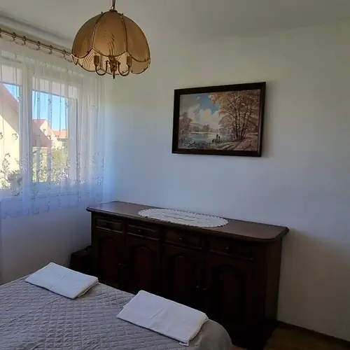 W jednej sypialni jest dwuosobowe łóżko, w drugiej sypialni są dwa jednoosobowe łóżka i dwuosobowa wersalka. Dodatkowo można skorzystać z łóżeczka turystycznego dla dziecka.