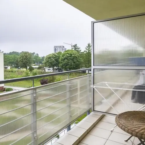 Apartament znajduje się w uzdrowiskowej części Kołobrzegu, w otoczeniu zieleni Parku Nadmorskiego. W odległości 100 m od apartamentu znajduje się przystanek autobusowy, a kursujący tam autobus zawiezie Państwa do centrum miasta, dworca, a nawet w okolice Portu i kołobrzeskiego Molo. Wielką zaletą tego miejsca jest ciche i spokojne podwórze z ogródkiem, mieszczący się tam plac zabaw jest rajem dla dzieci. Dodatkowo Goście mogą się udać na odpoczynek na taras widokowy znajdujący się na dachu apartamentowca. Tuż po wyjściu z obiektu spokojnym spacerem dotrzeć można do pobliskiego Amfiteatru oraz Kamiennego Szańca, w których odbywają się wieczorne imprezy, koncerty, kabarety oraz przedstawienia.