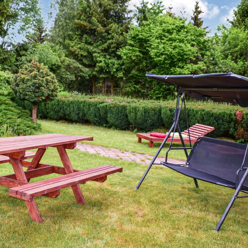 Meble ogrodowe, Częściowo izolowane, Dom wykonany z drewna i cegły