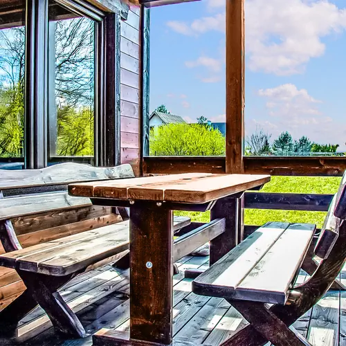 Działka ogrodzona, Meble ogrodowe, Zajęcia na świeżym powietrzu, Zimowy, Drewniany dom, Wspólna działka