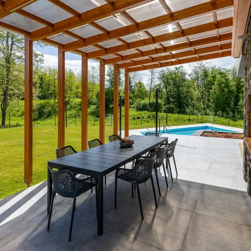 Punkty ładowania samochodów elektrycznych, Do wynajęcia tylko na wakacje, Działka ogrodzona, Zewnętrzne miejsce do czyszczenia ryb, Meble ogrodowe, Zimowy, Dom żelbetowy, Nie przystosowany dla grup młodzieżowych