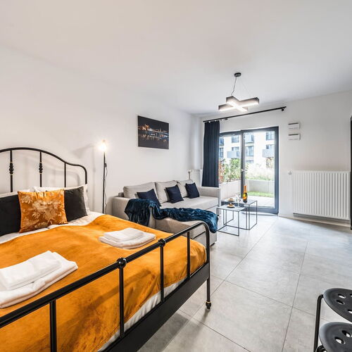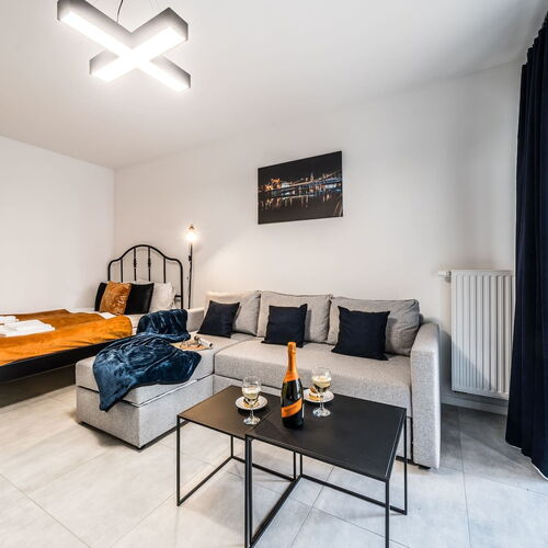 Starannie zaprojektowany apartament ma możliwość zakwaterowania 4 osób, nada się idealne dla rodziny lub pary! Przestrzeń apartamentu oferuje przestronny salon z aneksem kuchennym oraz łazienkę z prysznicem. Apartament wyróżnia się estetycznym i nowoczesnym wystrojem. Część dzienna wyposażona w wygodną, rozkładaną sofę oraz duże łóżko, które stanowią doskonałe miejsce wypoczynku i relaksu. Elegancki, a zarazem przytulny design oraz wysokiej jakości wyposażenie apartamentu gwarantują niezapomniany pobyt. Do dyspozycji gości jest także taras, stanowiący idealne miejsce na relaks po całym dniu zwiedzania Wrocławia.