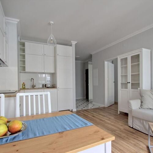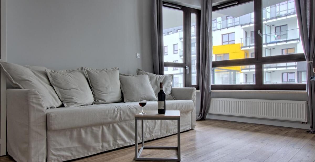 Ten nowoczesny i dobrze rozplanowany apartament ulokowany jest przy ulicy Skierniewickiej. Jest zlokalizowany na VI piętrze (budynek posiada windę). Do dyspozycji naszych Gości pozostaje 1 elegancko urządzona i przestronna sypialnia. Komfort zapewnią dźwiękoszczelne okna. Apartament posiada również w pełni wyposażoną łazienkę (kabina prysznicowa, suszarka do włosów i bielizny). Parking podziemny dodatkowo płatny 50 zł doba