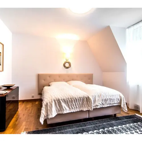 – sypialnia wyposażona w dwa pojedyńcze łóżka ( możliwość połączenia ) szafę, komodę, TV, fotel, biurko z krzesłem,